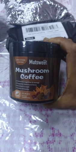 No sabe mal, pero si es un poco extraño, no es café con hongos, sino una especie de café hecho a base de hongos, tiene un sabor ligero a café pero como con humedad, no es malo pero si diferente.