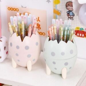 Hermosos porta lapiceros estilo huevo de dinosaurio. Disponible en rosado, celeste y verde claro. Organiza los lapiceros del escritorio del niño con elegancia.